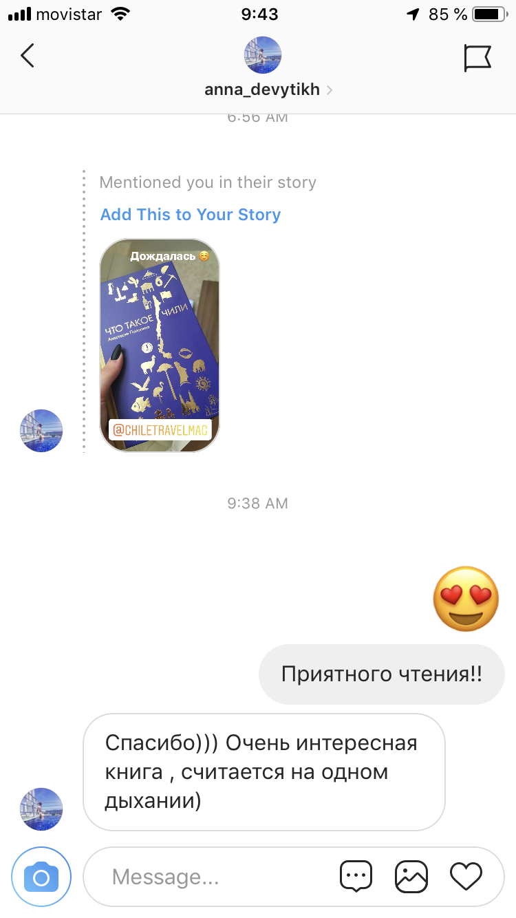Поделюсь с вами небольшой частью отзывов, которые приходят мне в Директ Инстаграма от читателей, прочитавших мою книгу «Что такое Чили».